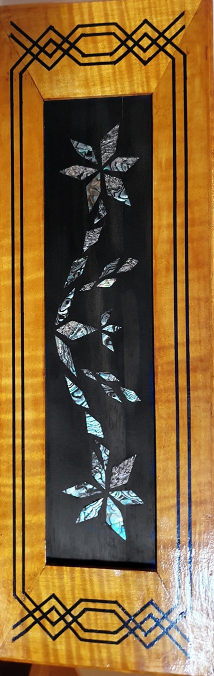 Tento klávesový nástroj vyniká precizním řemeslným zpracováním a bohatou výzdobou. Skříň zdobí ebenové intarsie v originálních geometrických motivech, které doplňuje šelaková politura pro zvýraznění struktury dřeva. Klaviatura je celá potažená ebenem, půltóny a čílka kláves jsou zvýrazněny perletí Paua z Nového Zélandu, přičemž čela rámu klaviatury nesou monogram majitele z perleti zasazené do ebenu. Rozsah nástroje odpovídá renesančním standardům s možností rozšíření. Součástí je i ručně zhotovená schránka na olověné závaží, potažená ebenem a intarzovaná logem dílny.